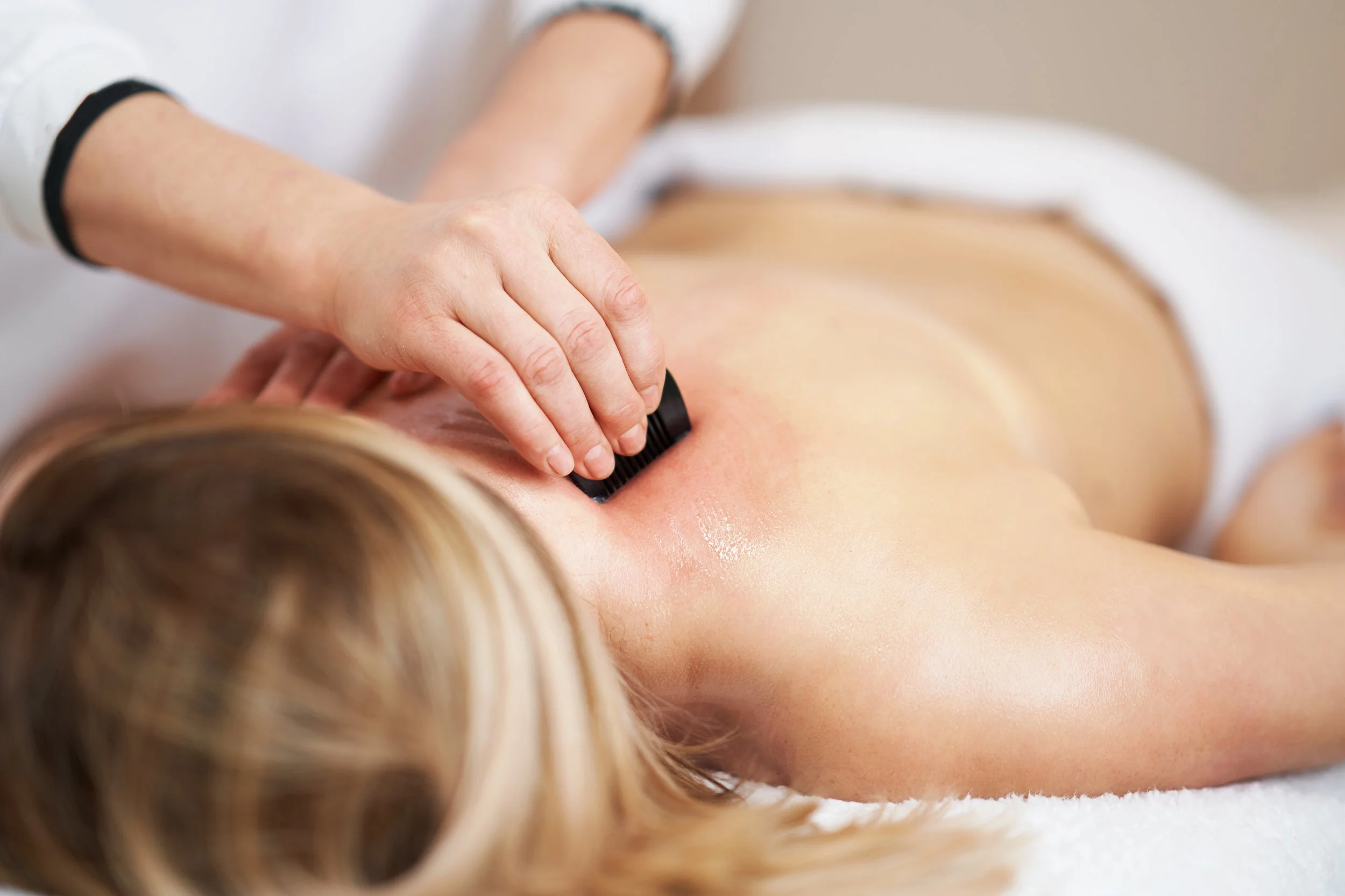 What it is: Repeated, lubricated scraping of the skin with a smooth tool to mobilize superficial tissue and relieve tightness.